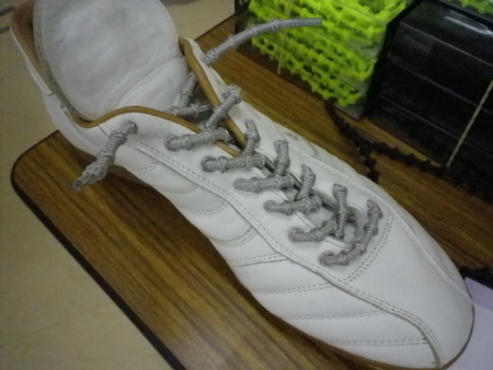 これ、「ゴム+結び目が規則的に配列」と言う靴ひもです。