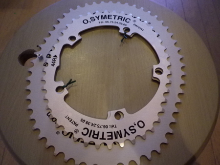 で、右側が現代の楕円チェーンリング。楕円と言うよりも平行四辺形に近い感じ。